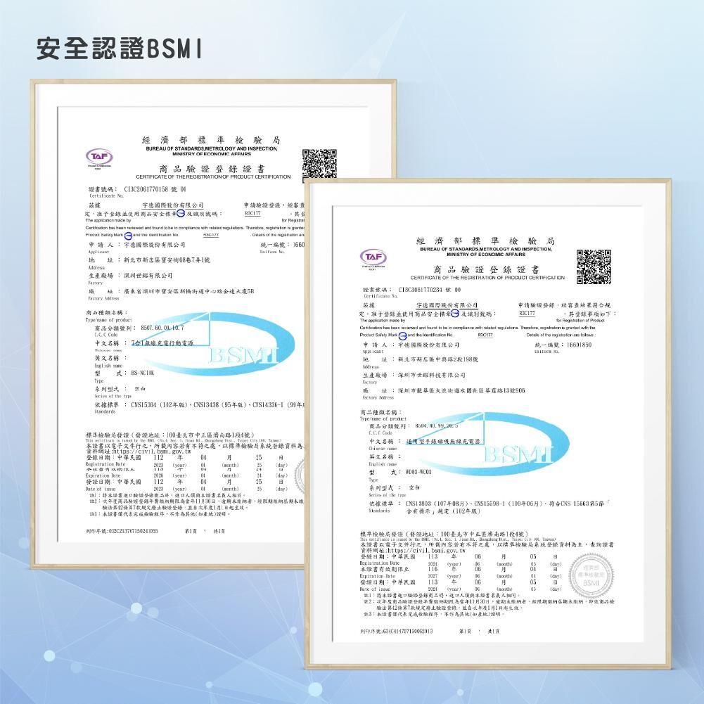 通過 BSMI、NCC 安全認證,內建多重保護機制,有效防止過充、過電流與短路風險,使用更穩定可靠。