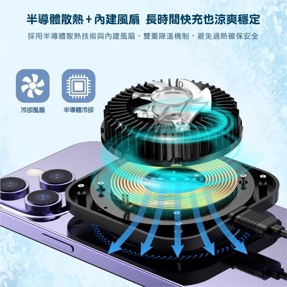 內建 半導體製冷模組與主動式散熱風扇,有效降低充電時產生的熱能,避免過熱降速,長時間充電依然維持穩定效率。