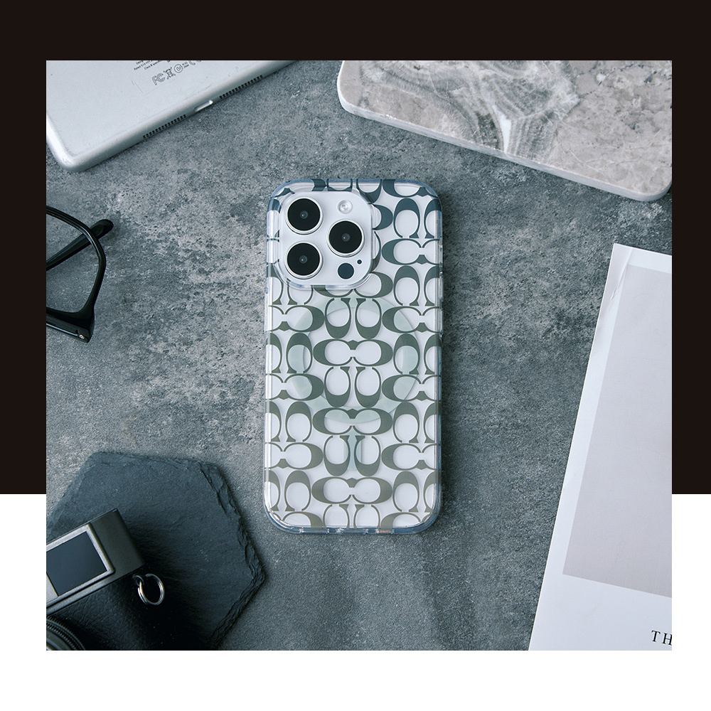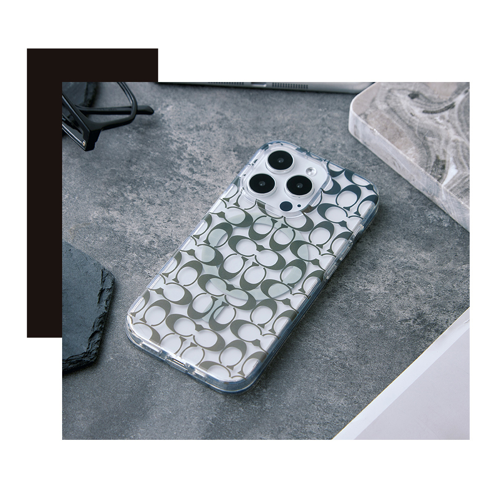 【COACH】iPhone 15系列 MagSafe 手機殼 軍綠經典大C