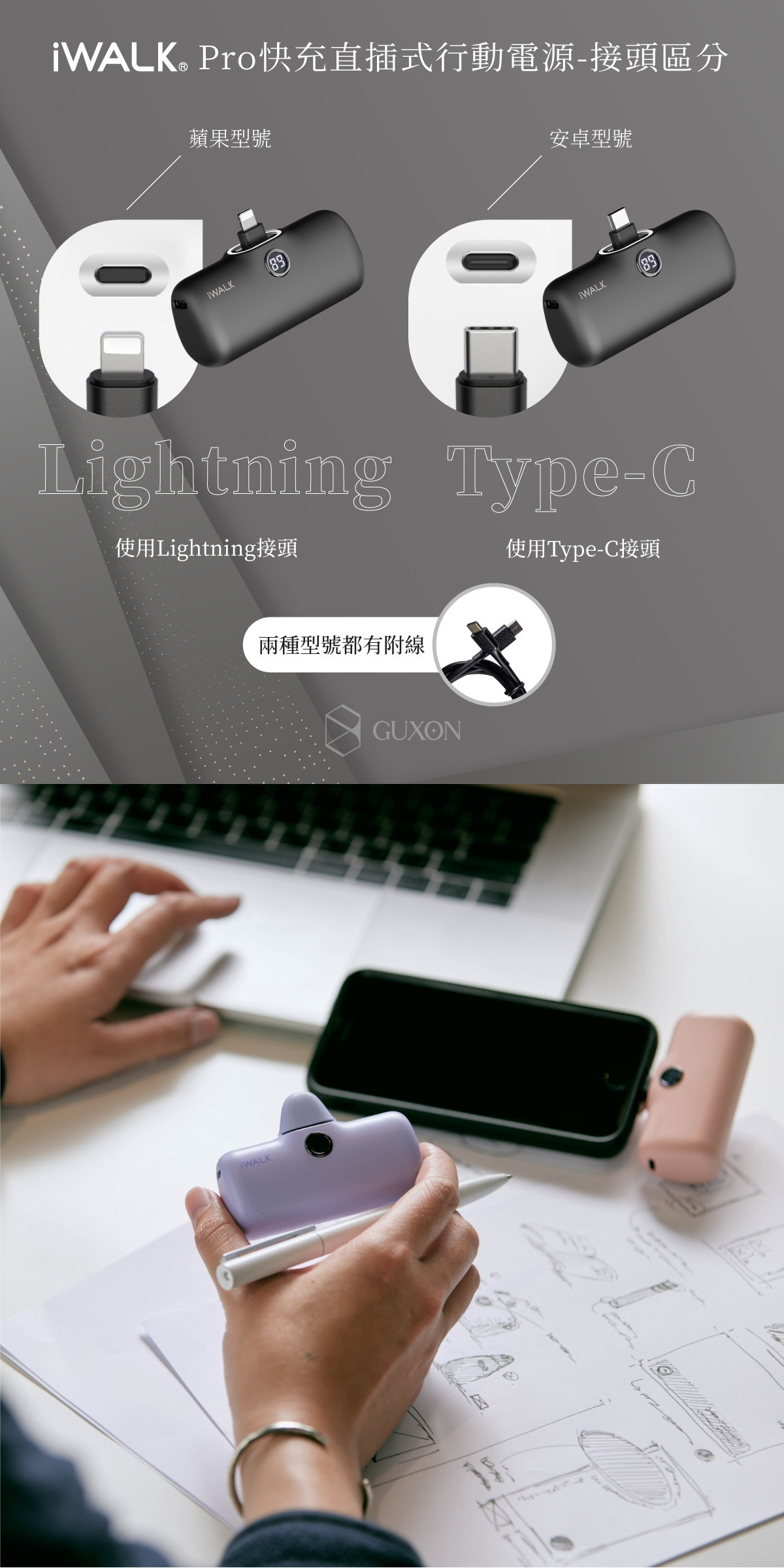 PRO版本為達到快充效果皆使用Type-C線替微型電源充電