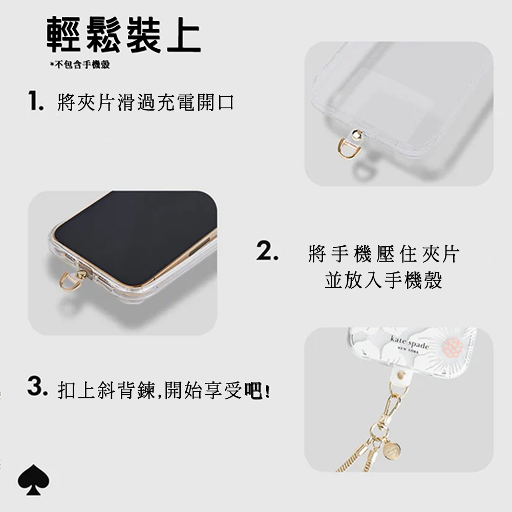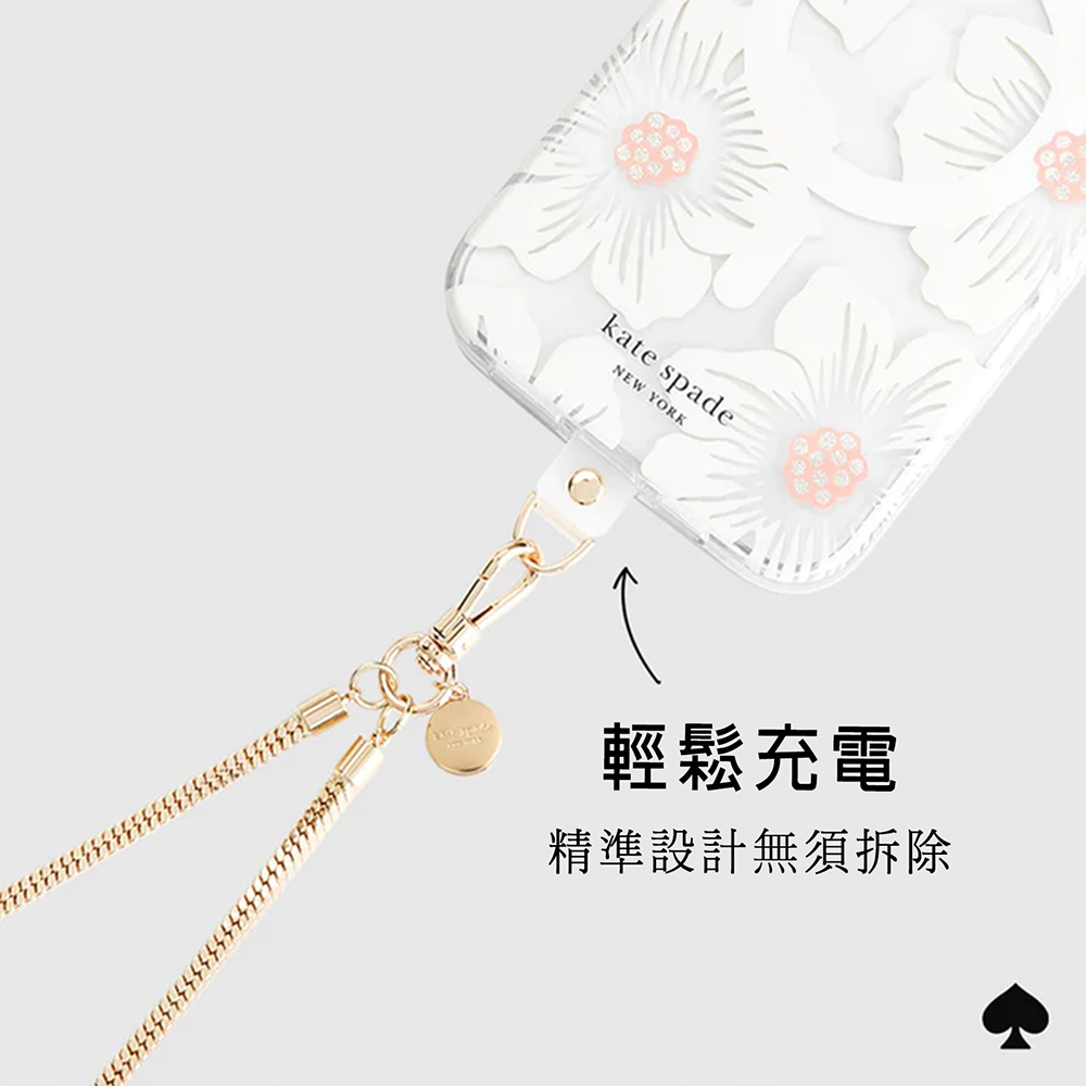 kate spade new york 手機配有別緻的鏈條,適合所有手機殼, 讓您無需取下手機即可為手機充電。從上午到下午輕鬆解放雙手!