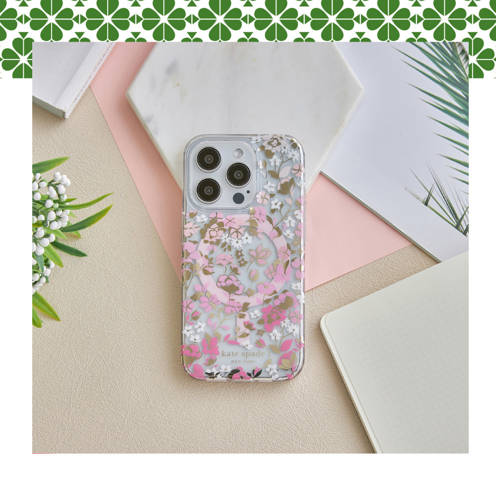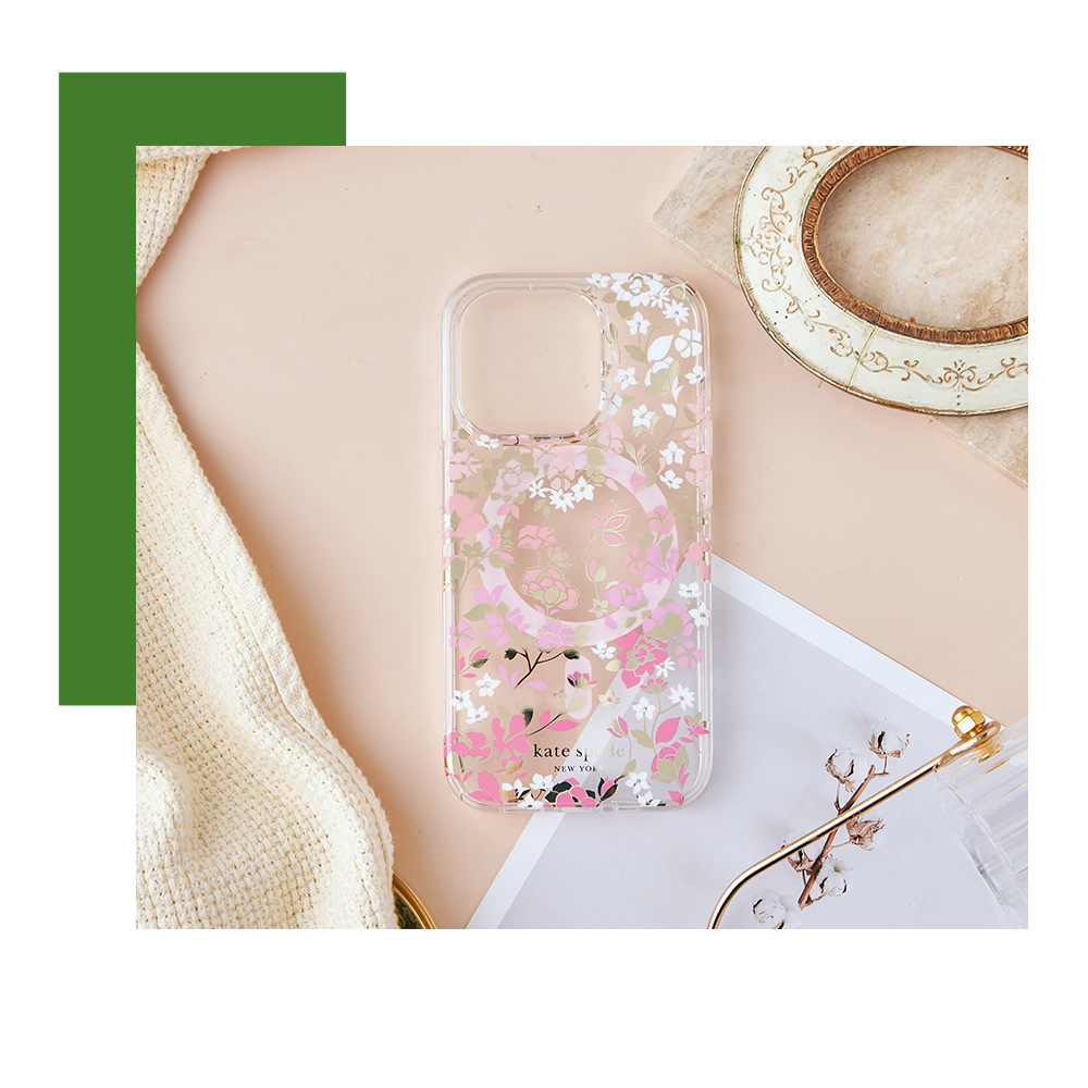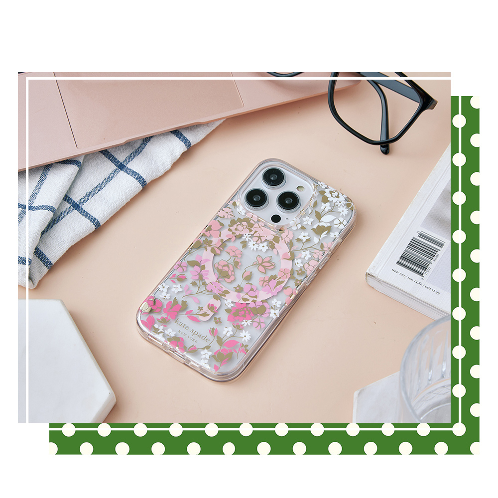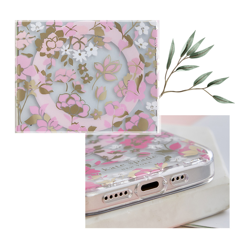【kate spade】iPhone 15系列 MagSafe 精品手機殼 桃花紛飛