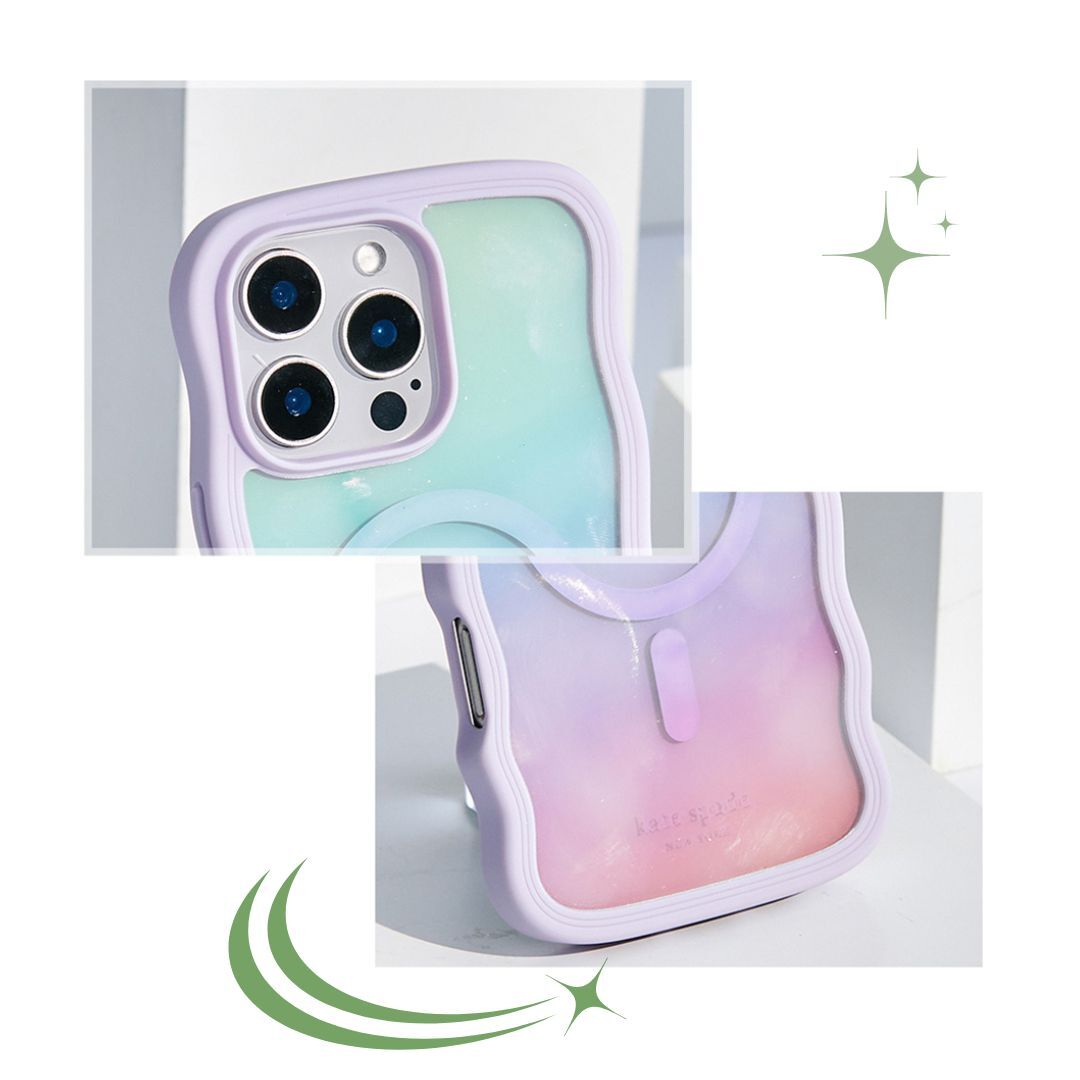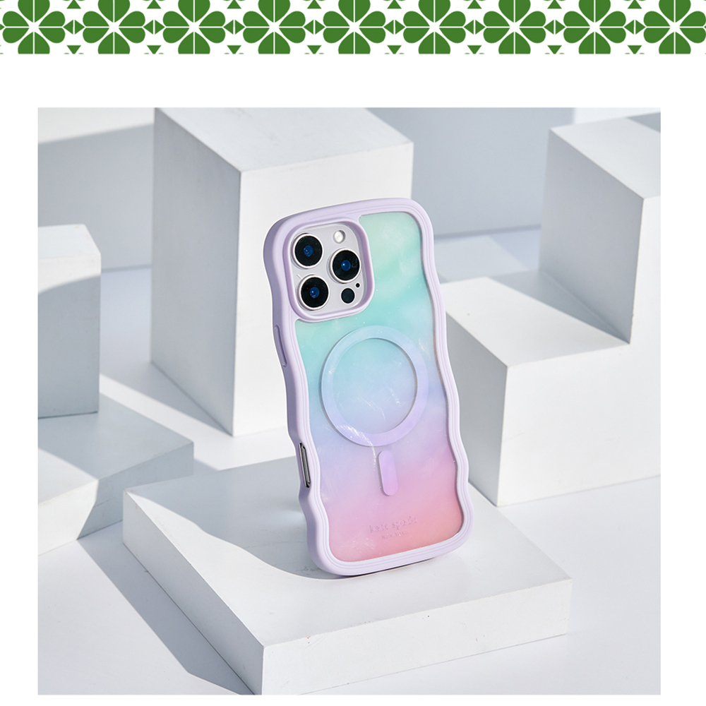 【kate spade】iPhone 16 系列 Magsafe 精品磁吸防摔波浪殼 粉彩紫