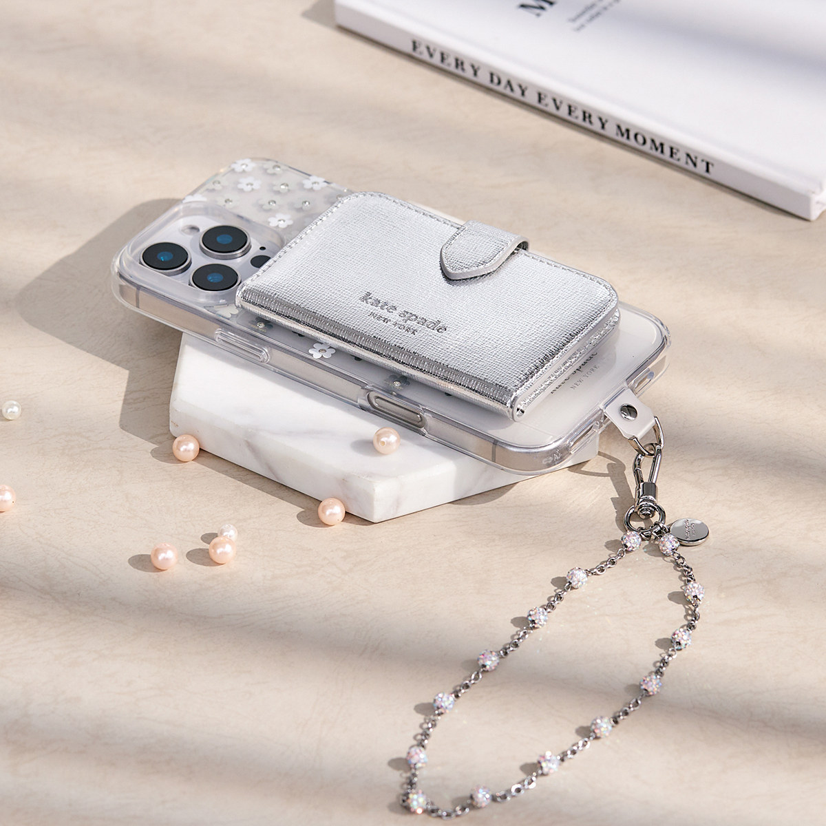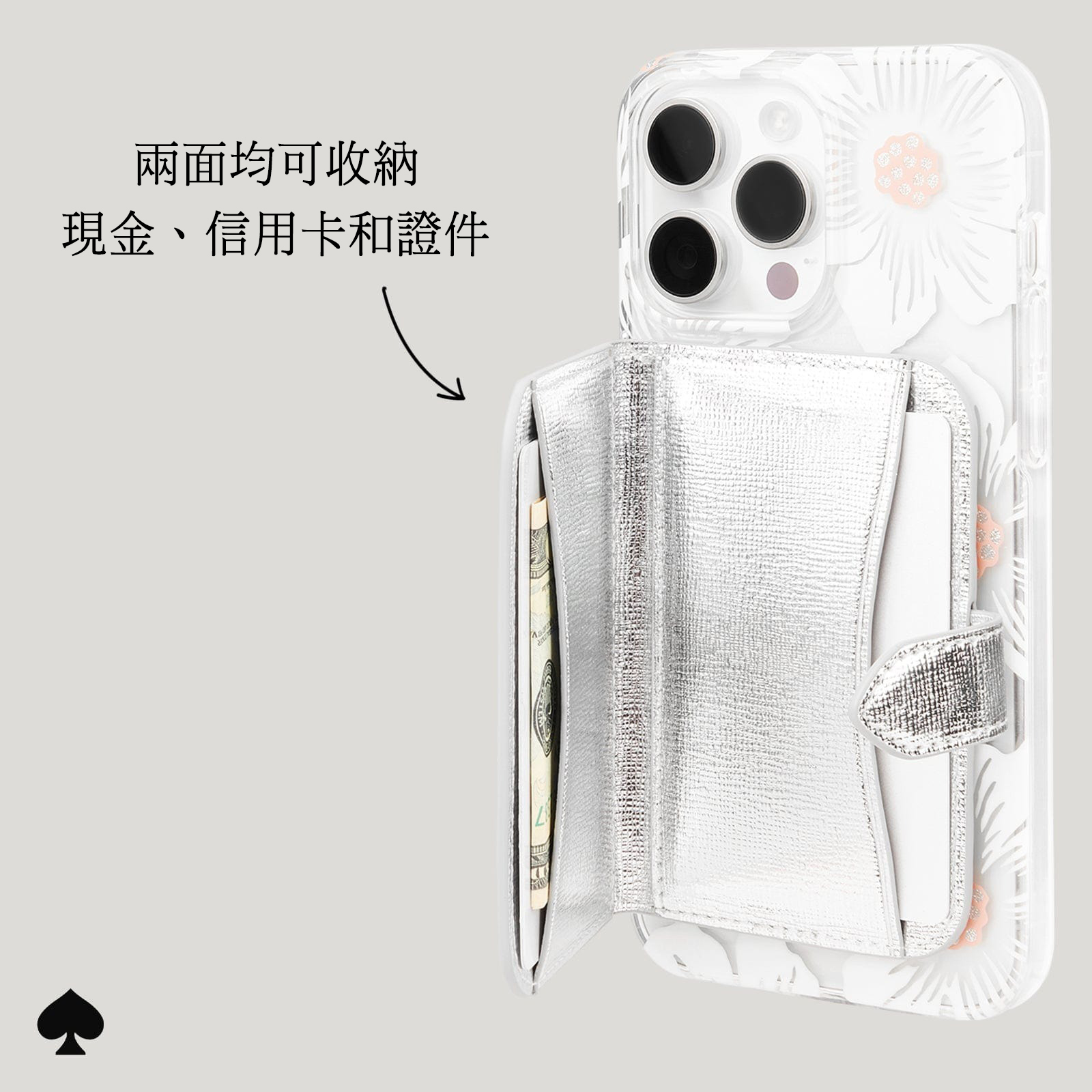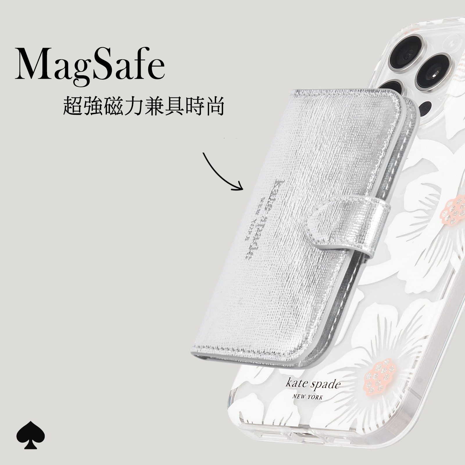 【kate spade】MagSafe MagSafe迷你掀蓋包 閃亮銀