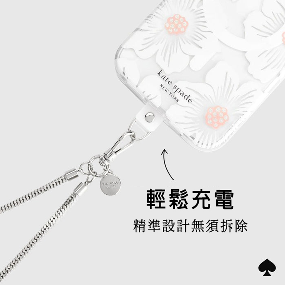 【kate spade】精品手機斜跨鏈銀色蛇鏈