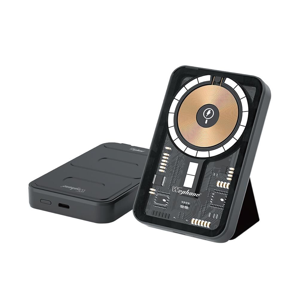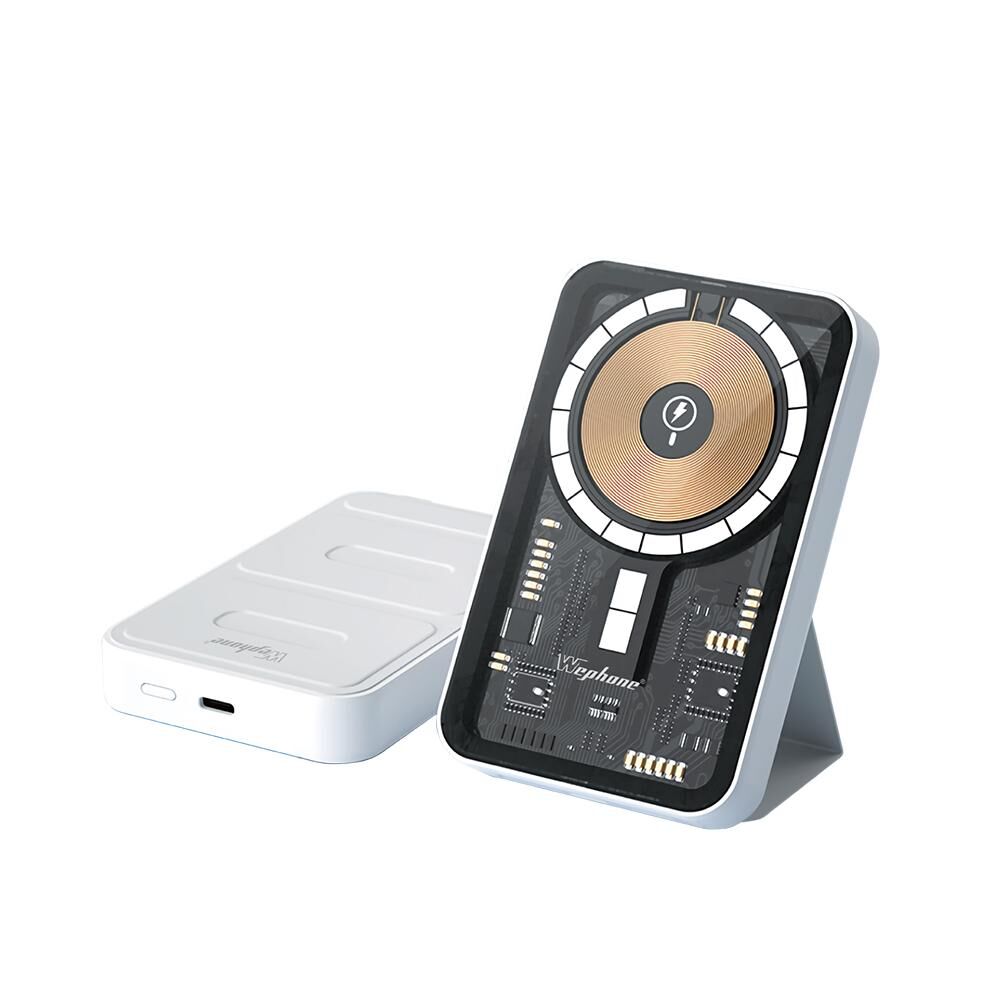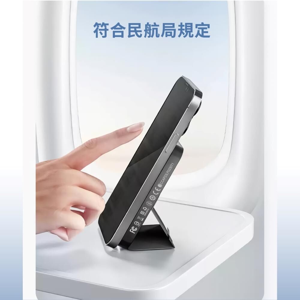 支援 MagSafe / Qi 無線充電 與 PD 20W 有線快充,可同時無線+有線雙輸出,一次充兩支手機不卡位。內建 隱藏式手機支架,可自由調整橫放、豎放角度,追劇、辦公更便利。
