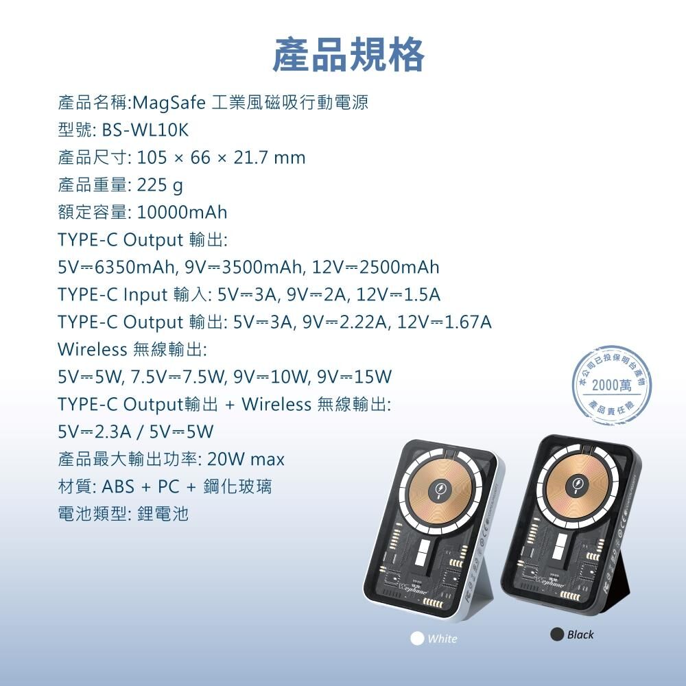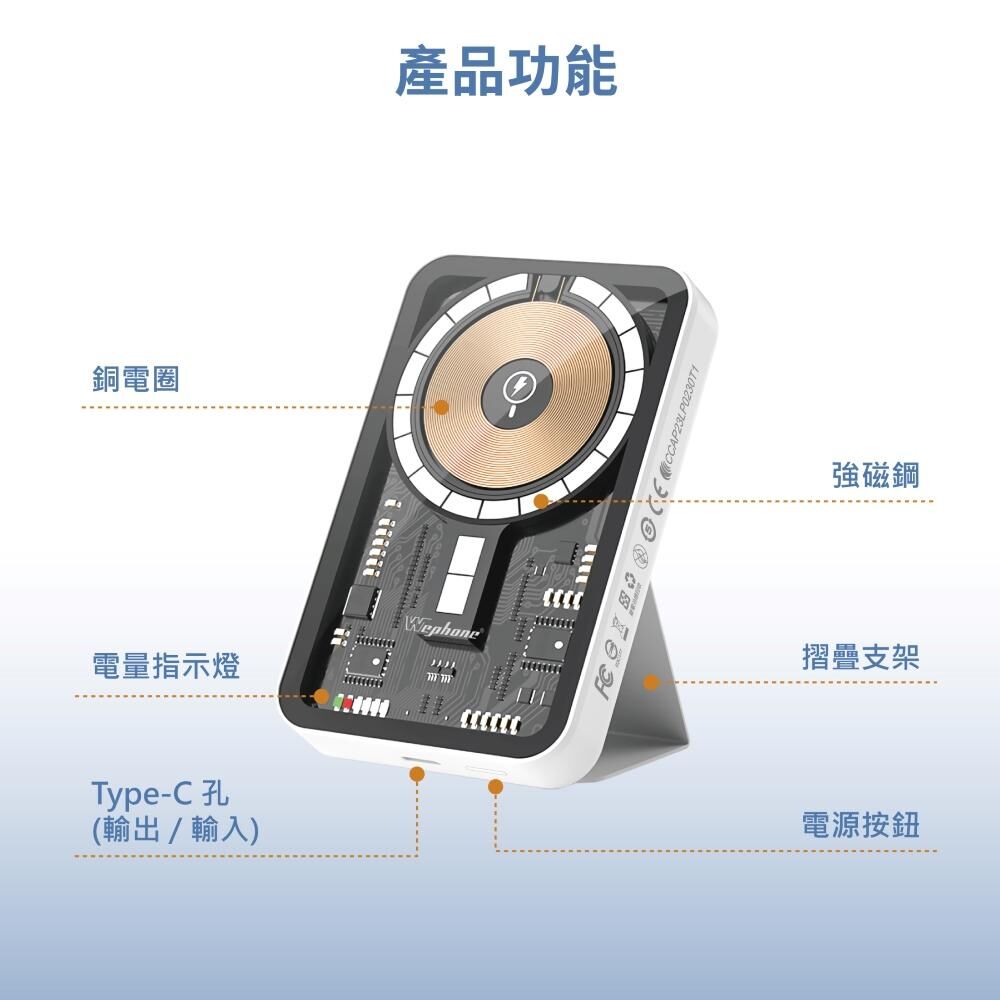 相容 iPhone 12 以後 MagSafe 系列,磁吸精準穩固不掉落;搭載 Type-C 雙向快充,10000mAh 大容量滿足外出需求。