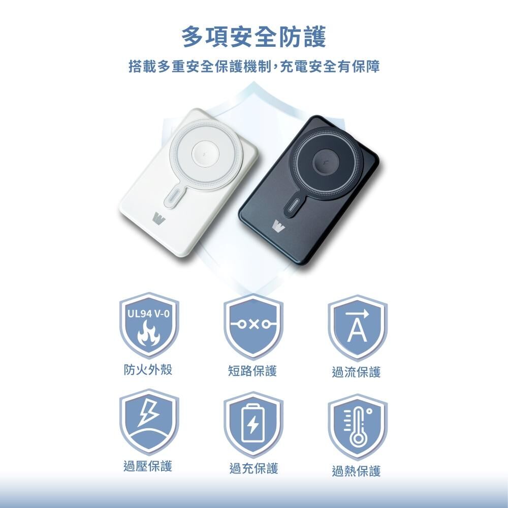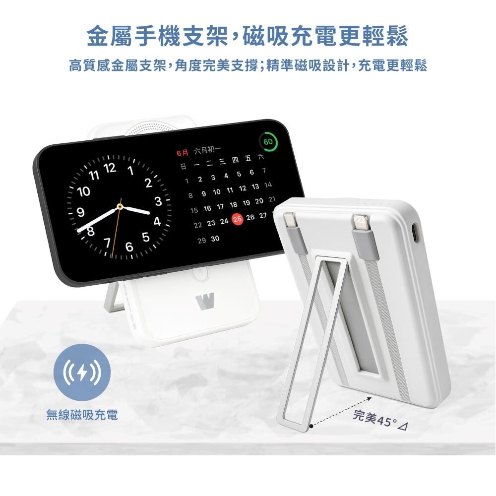 Wephone 5合1磁吸無線行動電源 集結磁吸無線充電、PD快充、有線輸出、自帶線與金屬手機支架於一機,多功能整合更好用。